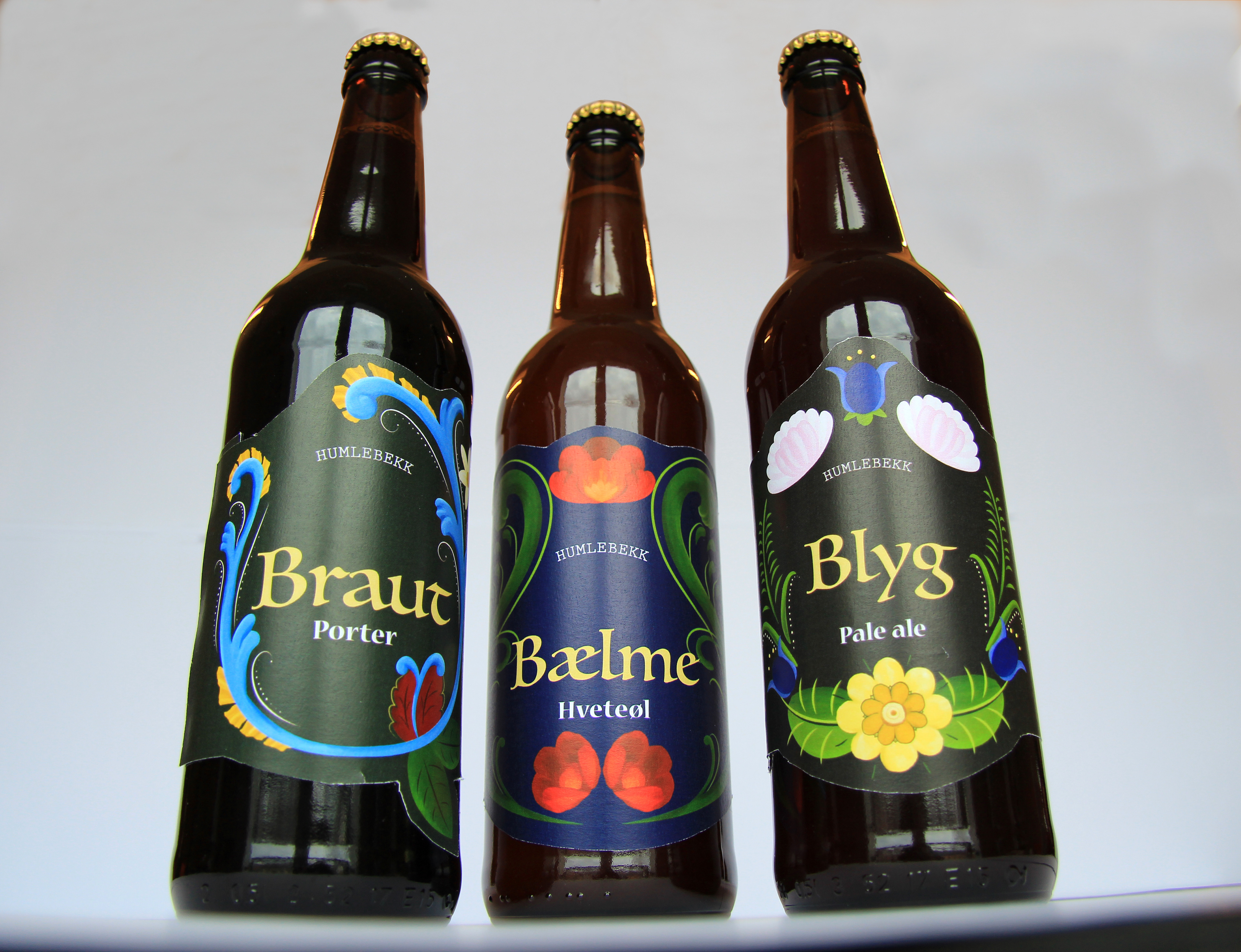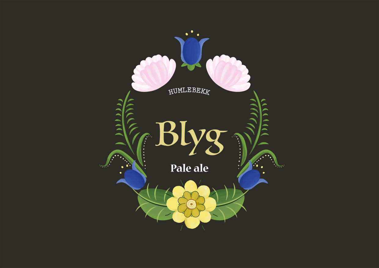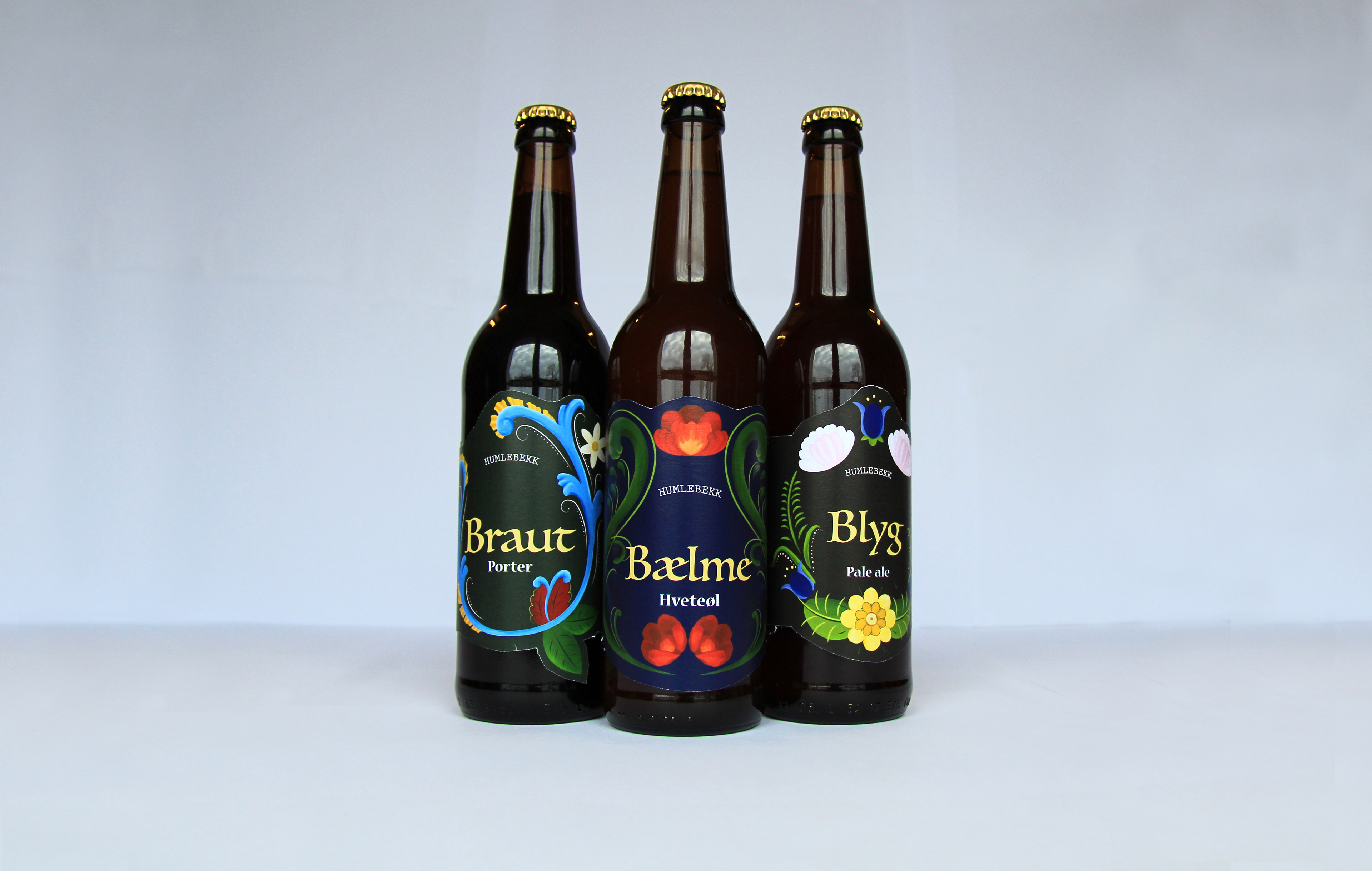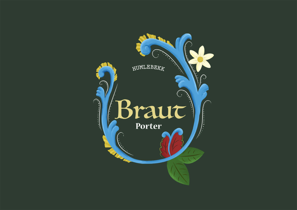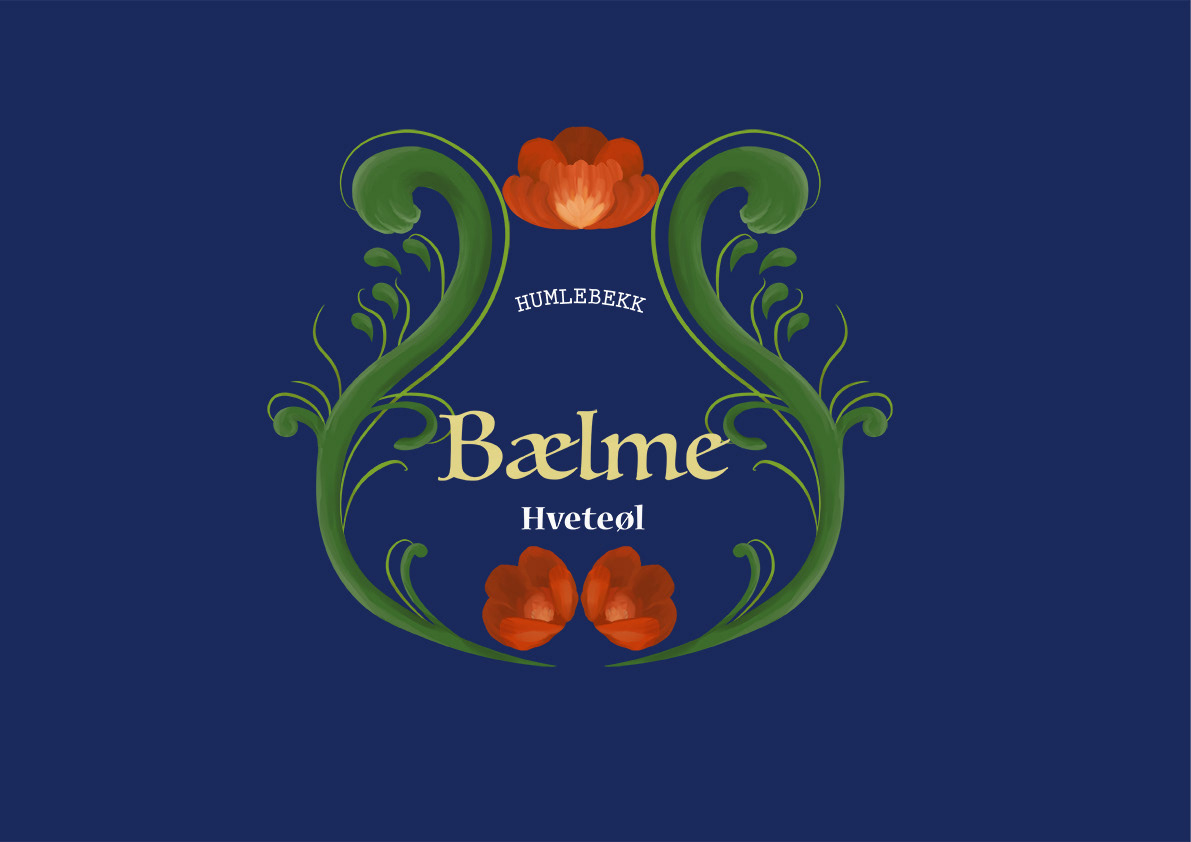 Etikettdesign inspirert av norsk rosemaling. Designet til å gi en følelse av tradisjon og nasjonalromantikk.